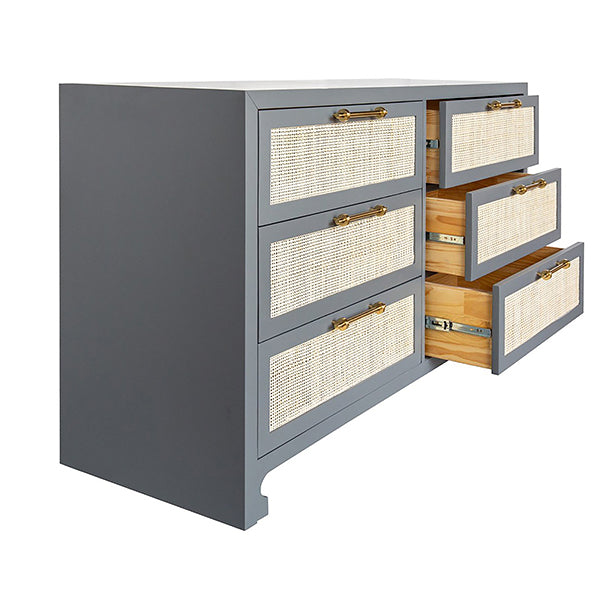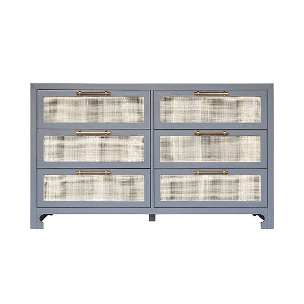British West Indies style with a modern flair, this extraordinary 6 drawer chest showcases natural, hand-woven caning on a crisp, matte grey canvas. The result is a sublime composition that embodies casual elegance. Whether placed in a coastal retreat or downtown loft, Carla complements any design motif.