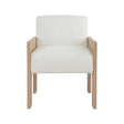 SQUARE ARM WOODEN ACCENT CHAIR IN CERUSED OAK WITH PERFORMANCE WHITE LINEN UPHOLSTERY