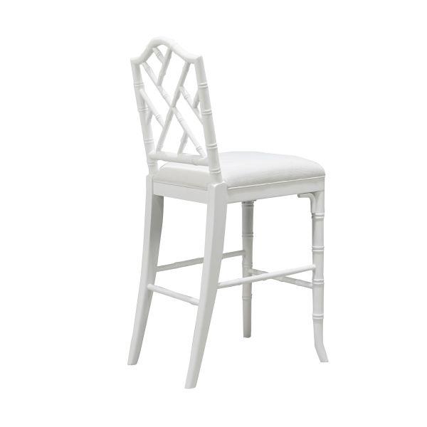 With its Chinese Chippendale styling, the Annette counter stool is a timeless classic in any environment. Annette's turned, bamboo profile and matte white finish evoke an organic look and feel, while its crisp linen upholstered seat offers a cozy perch.