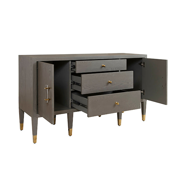 BUFFET WITH ACRYLIC AND BRASS HARDWARE IN SMOKE GREY OAK