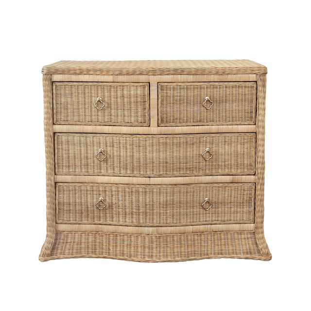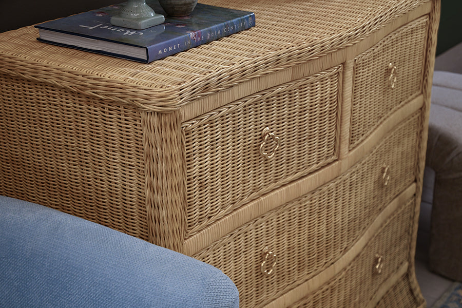 FOUR DRAWER CHEST IN WOVEN RATTAN WITH SATIN BRASS PULLS AND SOFT CLOSE GLIDES