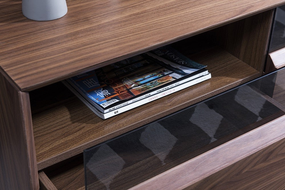 Equipped with soft-closing tracks, the drawers of the Modern Lisa TV Base offer smooth and quiet operation, adding a layer of sophistication to your home entertainment setup.