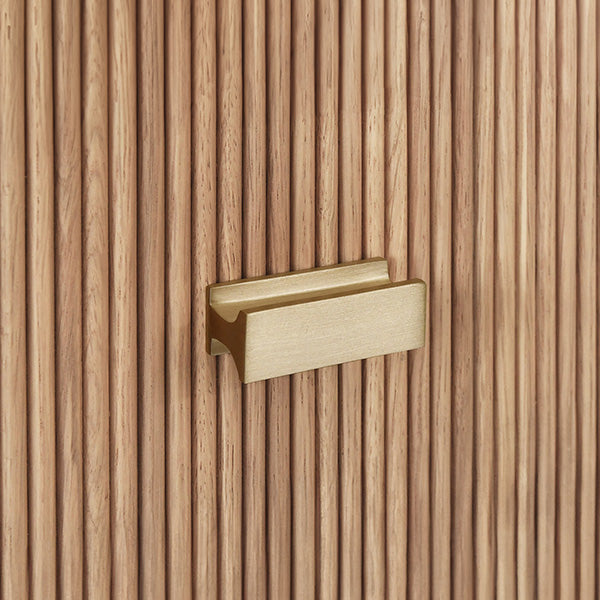 TWO DRAWER SIDE TABLE WITH FLUTED DETAIL IN NATURAL OAK WITH SOFT CLOSE DRAWERS.