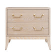 SABRE LEG 2 DRAWER SIDE TABLE WITH BRASS SWING HANDLE IN LIGHT CERUSED OAK
