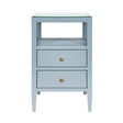 With its sophisticated form and subdued texture, the Roscoe side table brings style and elegance to any room. Two drawers with petite polished brass knobs sit elegantly beneath an open storage shelf. Finished in textured light blue linen, it's the perfect accompaniment to your favorite chair. Roscoe comes with a removable glass top and soft close glides.