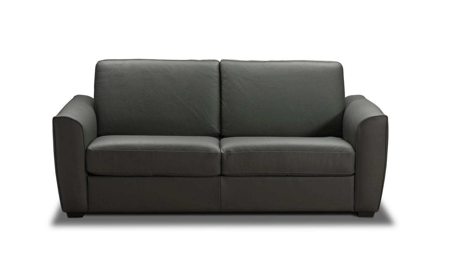 The Jasper Premium Sofa Bed is gorgeously upholstered in thick, durable grey premium leather that exudes a sophisticated charm, making it a perfect fit for any contemporary living space.