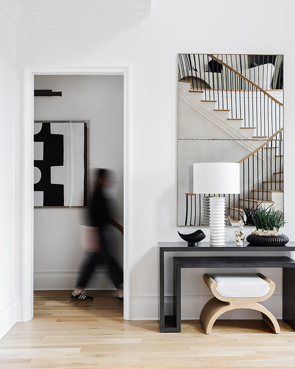 With sweeping curves and sculptural shape, the Asian-inspired Janna stool is a true conversation piece. With natural oak grain texture and white linen cushion, this stool adds a punch of personality to any room. Create a stunning entry way by bunching Janna stools beneath a console, then introduce as extra seating when hosting family and friends.