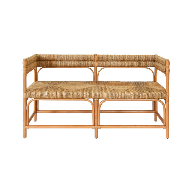 Discover the refined allure of our Ajax bench which is meticulously fashioned from natural rattan and seagrass. Its seagrass-wrapped seat and intricately arched detail showcase the epitome of unparalleled craftsmanship. Every curve and material employed reflects a commitment to artistic excellence. Whether placed in your entryway or living space, the Ajax bench promises to delight, infusing an alluring style that effortlessly enhances any room.