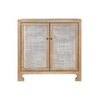 TWO DOOR CANE CABINET WITH BRASS HARDWARE IN CERUSED OAK