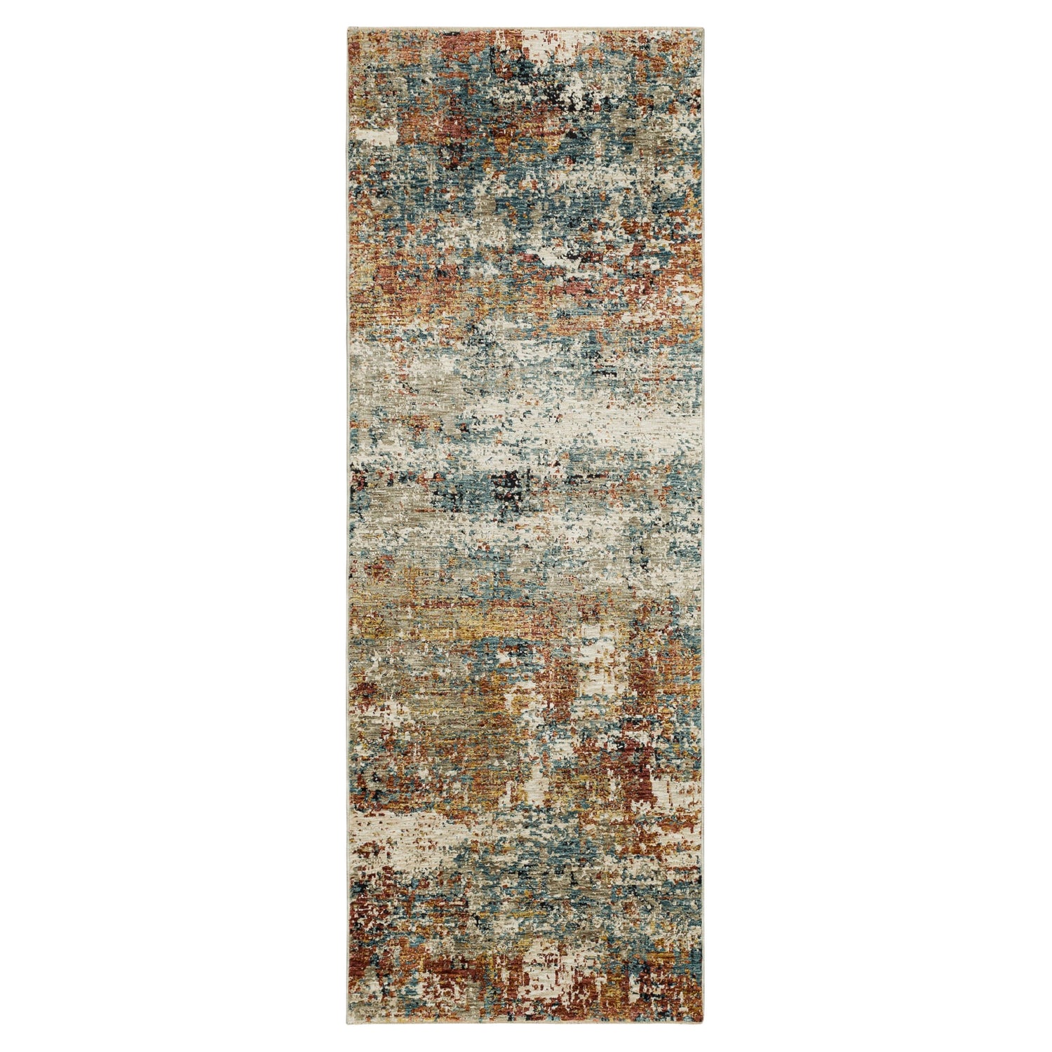 Inspired by modern abstract art, painterly influenced splashes of rust red, blue and beige abound on the distressed contemporary canvas of Karastan’s Ankara Area Rug. Machine woven with premium synthetic yarn, this area rug offers an ultra-soft feel and superior color clarity that makes a luxurious statement in any space. Available in popular sizes, this collection is a great choice for adding style to a variety of spaces in your home such as living rooms, bedrooms, dining rooms, and more.