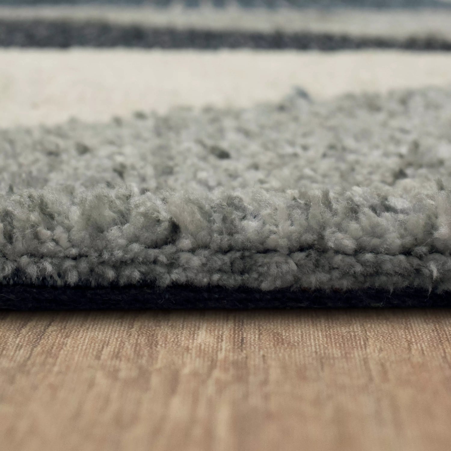 Designed for Karastan Rugs by Drew & Jonathan Home, the Bowen Collection features a variety of stylish geometric and abstract patterns in versatile color palette combinations. Knitted from premium polyester yarn, this area rug collection features a textured high/low cut and loop pile that makes a luxurious statement in any space. The resilient pile offers sumptuous softness and rich colors with dependable durability designed to thrive in high traffic areas. Available in popular sizes such as 5x8 and 8x10, this area rug collection is a great choice for adding style to a variety of spaces in your home.