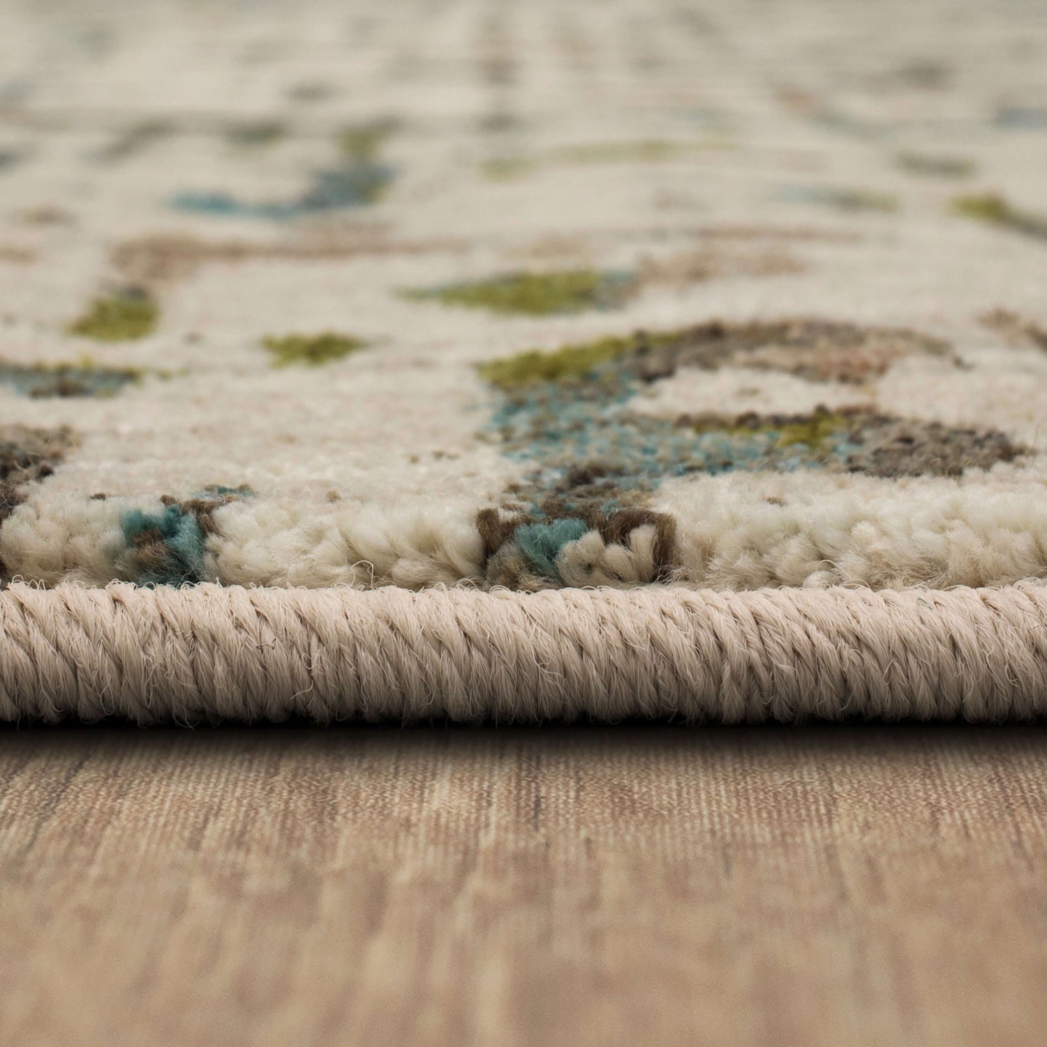 Influenced by abstract art, the modern design of Karastan Rugs' Wellspring Area Rug in Oyster features distressed droplets of contemporary color, including hues of cool cream, celery green, aqua lagoon, admiral blue and gun metal grey. This original design was created in collaboration with Scott Living, a lifestyle brand inspired by the unique heirloom industrial and modern aesthetic design philosophy of Drew and Jonathan Scott, hosts of HGTVs Property Brothers series. Woven with Karastan Rugs' exclusive ecofriendly EverStrand™, a premium polyester yarn created from post-consumer recycled plastic water bottles, the designs of the Expressions Collection are as easy on the eyes as the environment around us. Renowned for its irresistible softness, this silky yarn also offers superior strength stain resistance, dependable durability and an illustrious color clarity. Refreshing and radiant, colors come alive through the subtle light catching sheen inherent to this luxurious yarn.