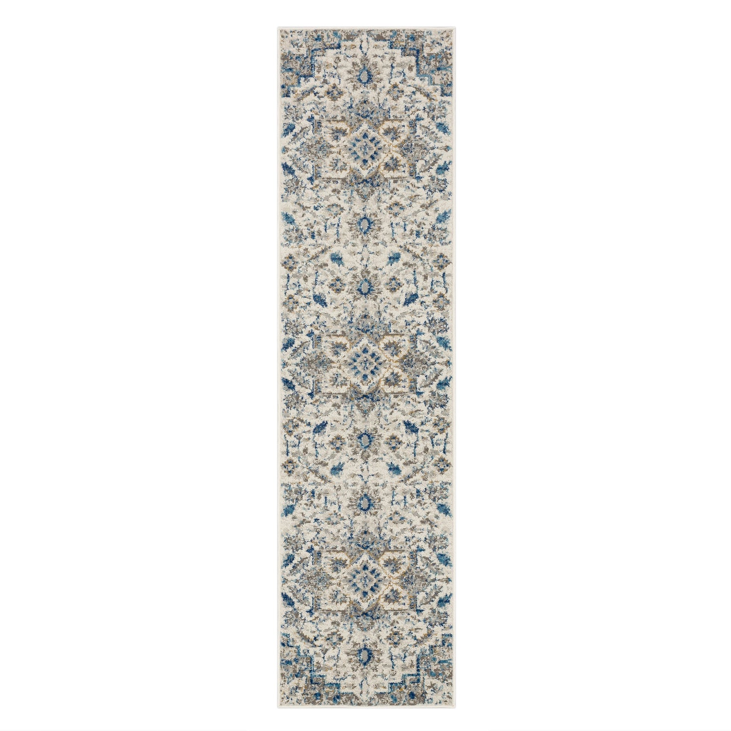 The Mohawk Home Copeland Area Rug features an intricate floral ornamental design in versatile neutral color palette options with pops of blue, cream, and grey color. Made with a polypropylene and polyester blend, this resilient rug offers sumptuous softness and rich colors with the dependable durability needed for busy households. A smart choice for high-traffic areas and households with kids and pets. Available in scatters, runners, and popular sizes such as 5x8 and 8x10, this collection is ideal for adding style to a variety of spaces in your home.