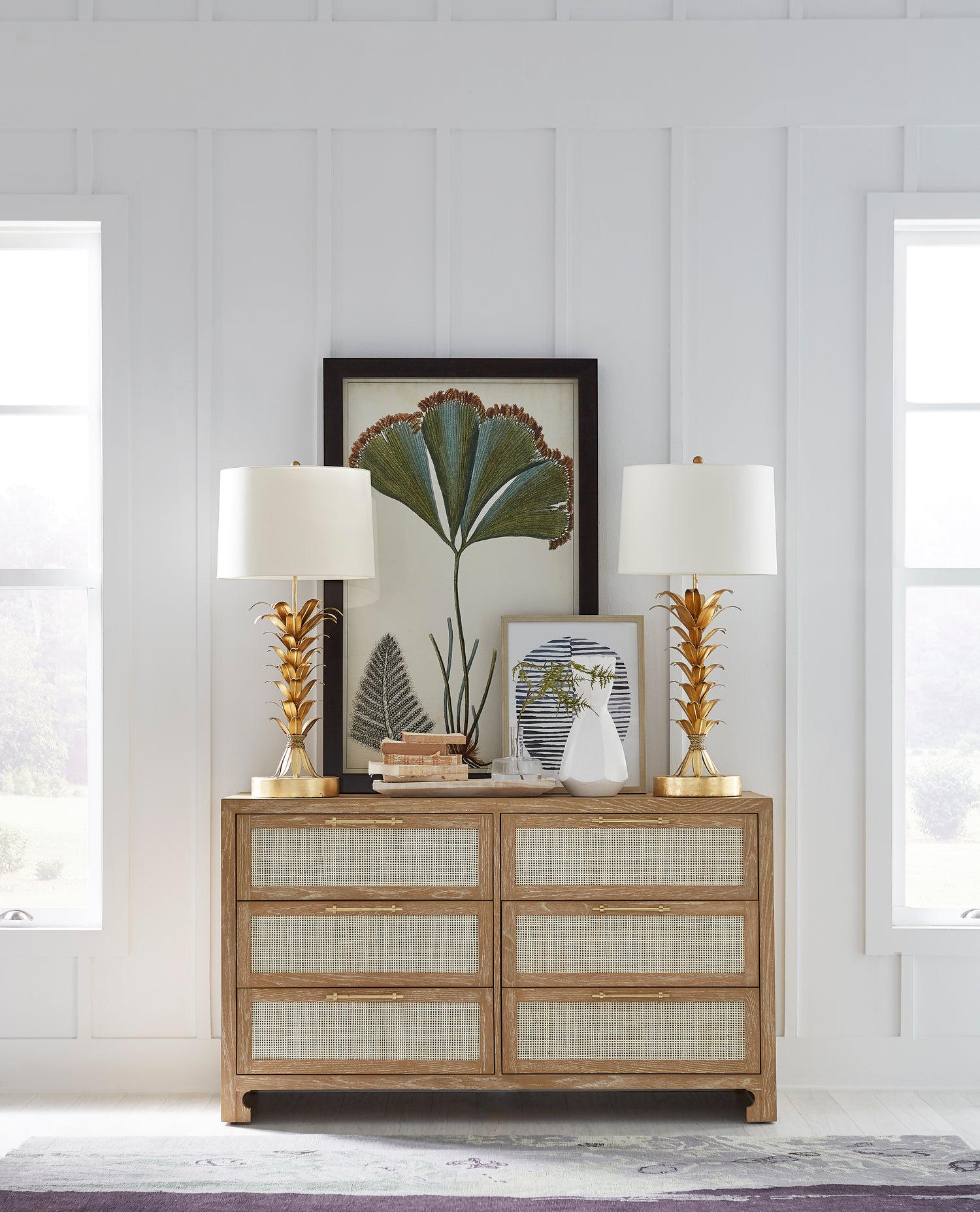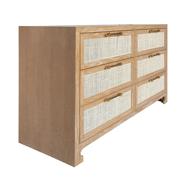British West Indies style with a modern flair, this extraordinary 6 drawer chest showcases natural, hand-woven caning on a rich, cerused oak canvas.  The result is a sublime composition that embodies casual elegance. Whether placed in a coastal retreat or downtown loft, Carla complements any design motif.