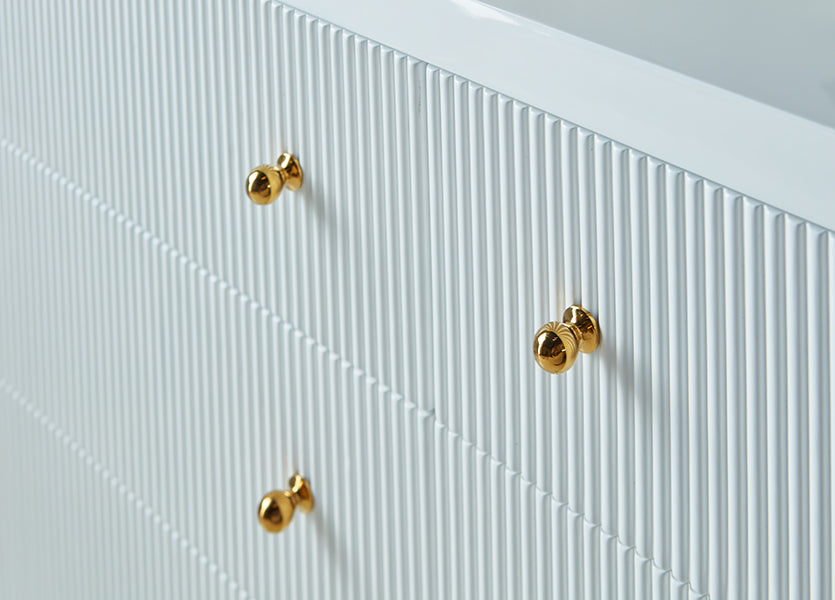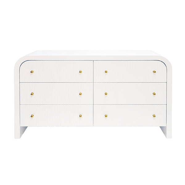 WATERFALL EDGE CHEST WITH FLUTED DRAWER FRONT IN GLOSSY WHITE LACQUER