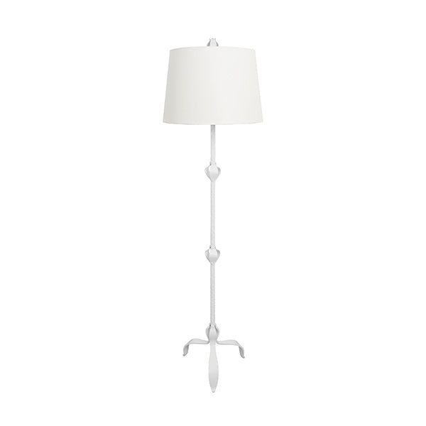 THREE LEG IRON FLOOR LAMP WITH LEAF DETAIL IN MATTE WHITE POWDER COAT
