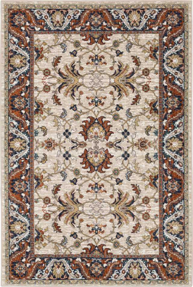 Globally influenced Persian design themes, like leafy palmettes and golden vines, cascade over the timeless traditionally inspired canvas of Karastan Rugs' Santorini Area Rug in Alabaster. This stately styles ivory-hued base balances rich hues of spice, luxe rose gold, silvery grey, light blue, mustard green and biscotti. Divine dustings of iridescent rose gold viscose glisten alongside plush SmartStrand® Triexta yarn and EverStrand™ recycled polyester yarn in the luxurious design debuts of Karastan Rugs' Soiree Collection. A chic cause for celebration, glamour, stain resistance and sustainability are wondrously woven together in this artistically influenced soiree of sought-after styles.