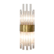 The Art Deco-inspired Natasha sconce features offset acrylic rods housed within an antique brass band. Illuminated from above and below, Natasha gently diffuses light to create a warm, inviting ambiance for your hallway or study.